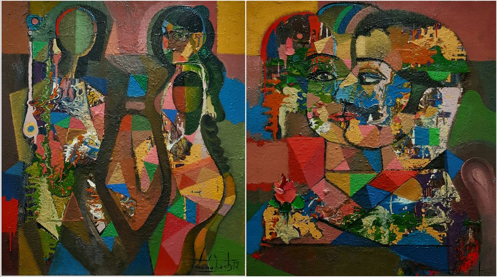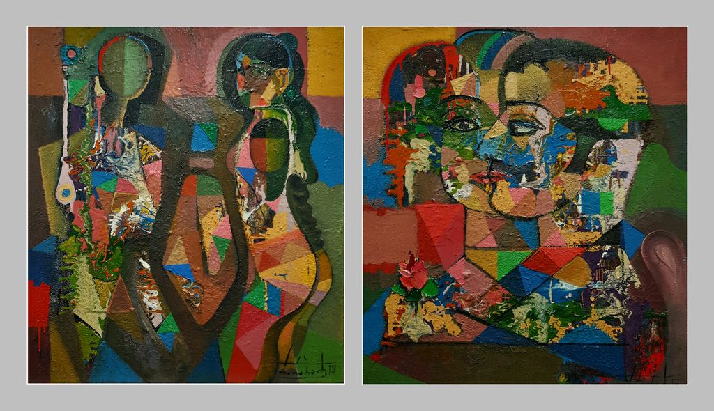 Картина Диптих состоит из двух частей. Размер каждой части 90х80 см. Общий размер 90х160 см.